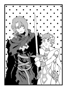 グローリー取得クエストで「道」がテーマだったので、そこからパーシヴァルの「王道」まで脳が飛躍して、最終フェイト感想漫画をそれにからめて描くのもいいな、と思いました。詰め込みすぎか?とも思うけど…。まだオチがつかなくて頭の中でぐにゃぐにゃとプロットをこねくり回している…。氷炎早く〜〜!!
