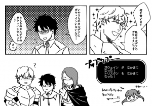 ガウェインはエクストラのマスターと一緒に来るものとばかり思っていたので、ぐだと一緒に行動するとは思いませんでした。なんか本音が出たり俗っぽいところが出たりしてますが大丈夫なのか。いつもぐだおくんでプレイしてるからなの?ぐだこちゃんの前でもそんな発言していいのか??「話せばわかる騎士です!(意訳)」って言ってたけど話し合うことがかつてあっただろうか…。あとトリスタンと対峙した時に「マスターの考えに従うのみ!」みたいなことをいってるのが重いし怖いな~…と。一般人寄りのぐだには重くない?と思ってしまう…。いや、ガウェインは好きですよ。